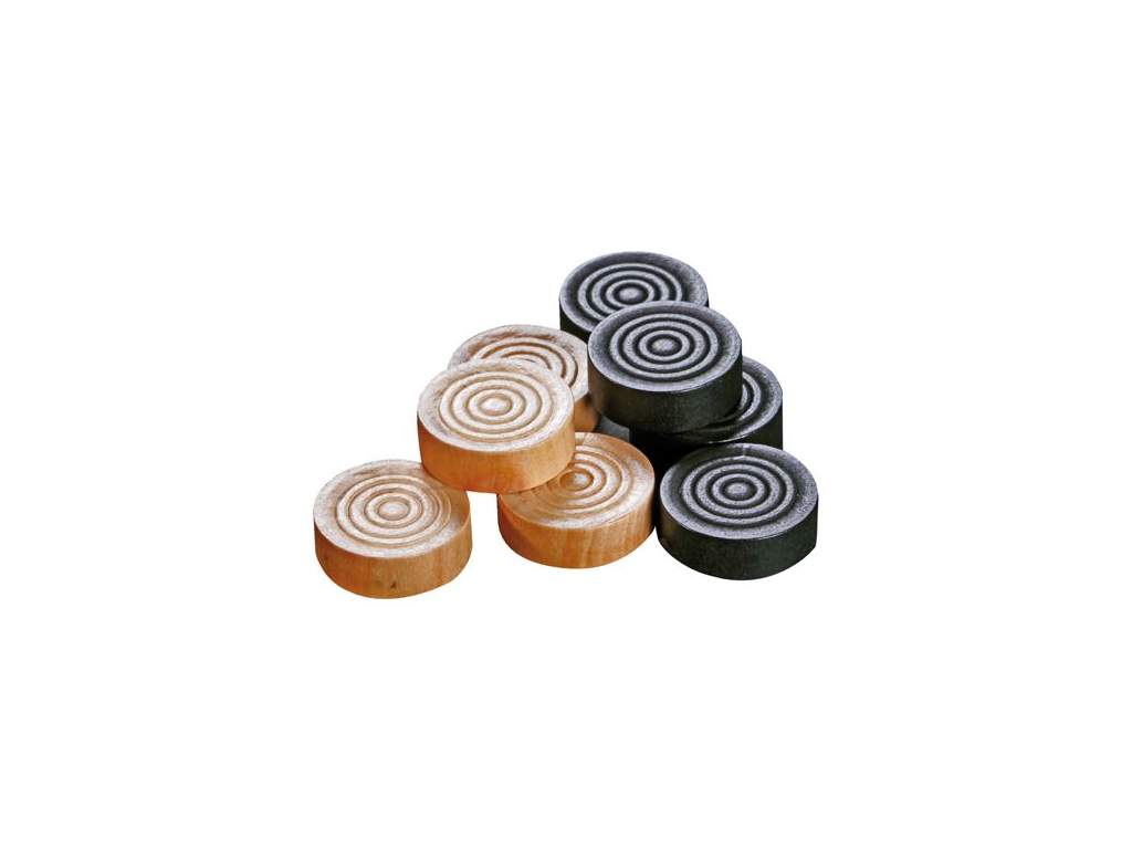 Dřevěné žetony pro hru dáma ve světlém a tmavém provedení. Jednoduché provedení žetonů uložených v dřevěné krabičce pro pohodlné uložení. Sada obsahuje z každé barvy 20 žetonů.