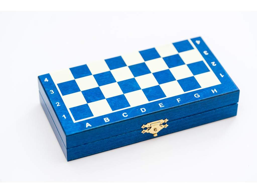 Magnetické dřevěné šachy mini modré + doprava zdarma