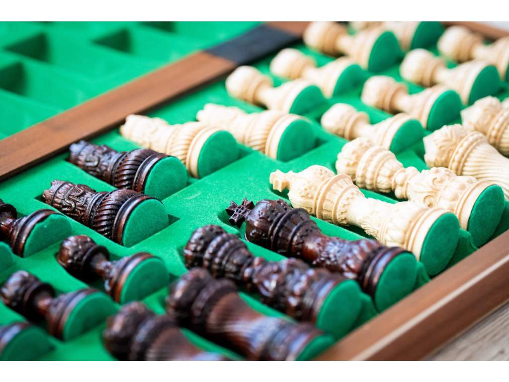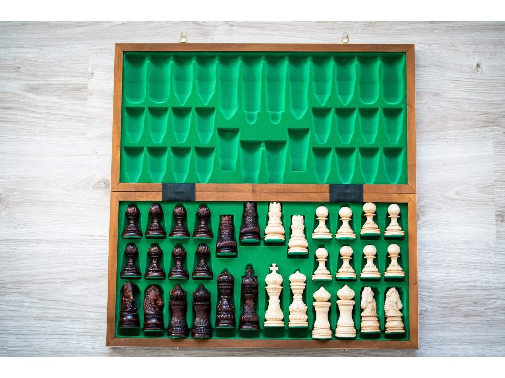 Každá figurka je pečlivě vyřezávaná, aby vynikla její jemná ornamentika a stylové detaily inspirované exotickými motivy. Masivní dřevěná šachovnice vytváří dokonalý prostor pro strategické souboje a zároveň působí honosně a exkluzivně.