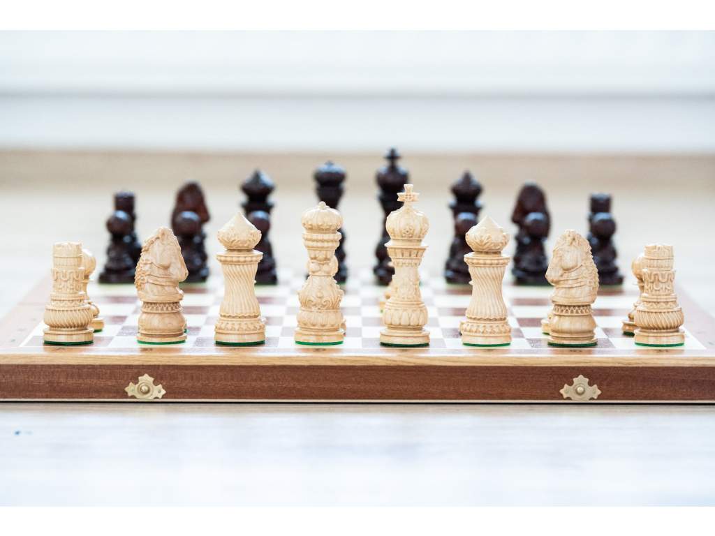 Vstupte do světa tajemného Orientu s jedinečnými dřevěnými šachy ORIENT, které vás okouzlí svým luxusním designem a precizním zpracováním. Tato šachová souprava je skutečným uměleckým dílem, které v sobě spojuje východní eleganci, tradiční řemeslo a noblesní vzhled, díky čemuž se stane výjimečnou ozdobou vašeho domova i nádherným herním nástrojem.