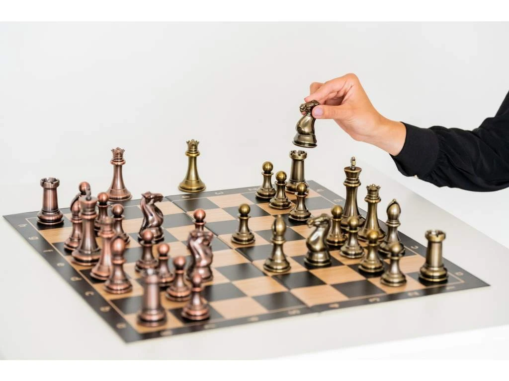 Kovové šachové figurky se skvěle drží v ruce a jsou pečlivě vyrobeny pro seriózního šachistu. Celková hmotnost této soupravy je 1,6 kg, takže si vychutnáte pocit z každé figurky ve vaší ruce.