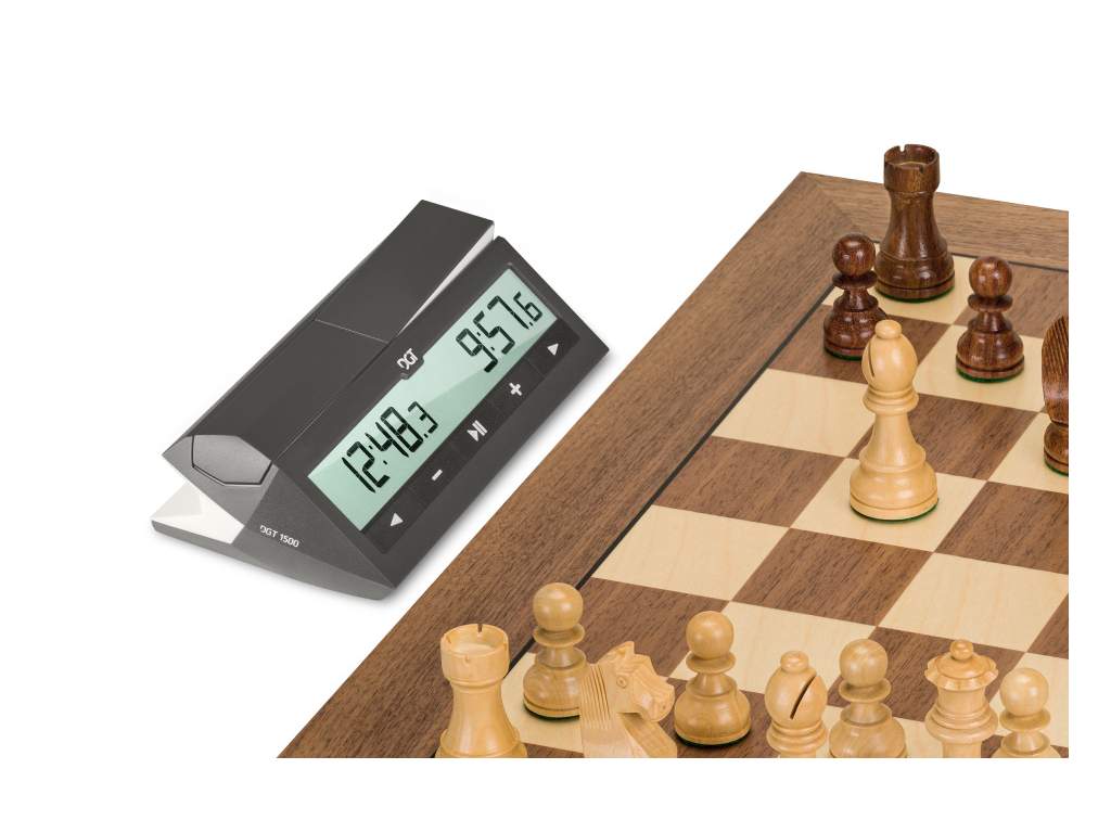 DGT1500 jsou navrženy s ohledem na rychlé šachové partie a jsou dokonalým časovačem hry, kdy záleží na každé vteřině. Jedinečnou vlastností tohoto modelu je přídavná číslice zobrazující desetiny sekundy, což je skvělá funkce pro sledování času zbývajícího do konce partie. Křišťálově čistý displej je snadno čitelný během intenzivních partií.