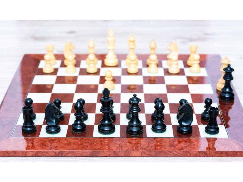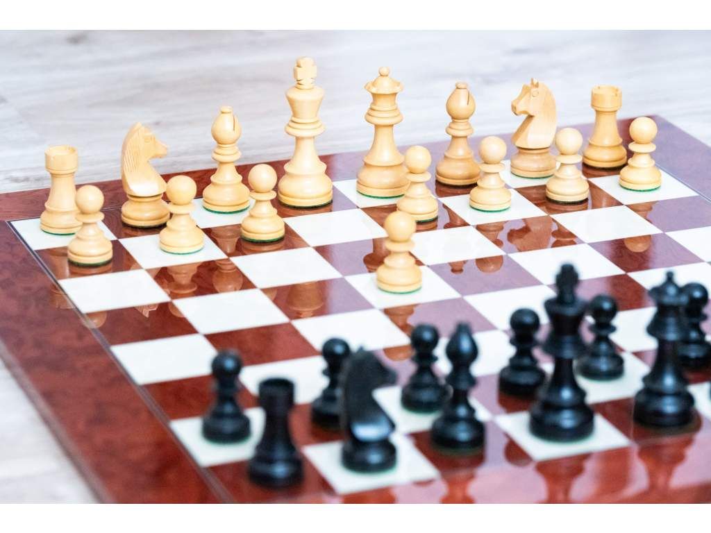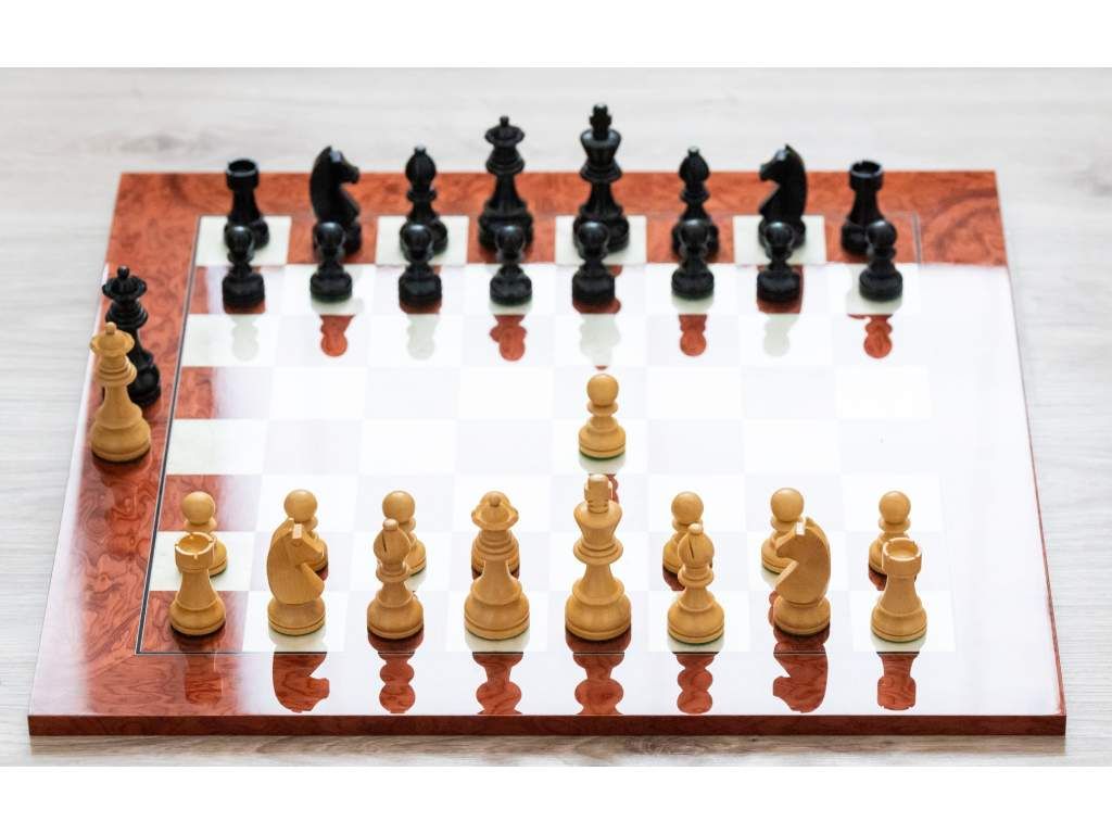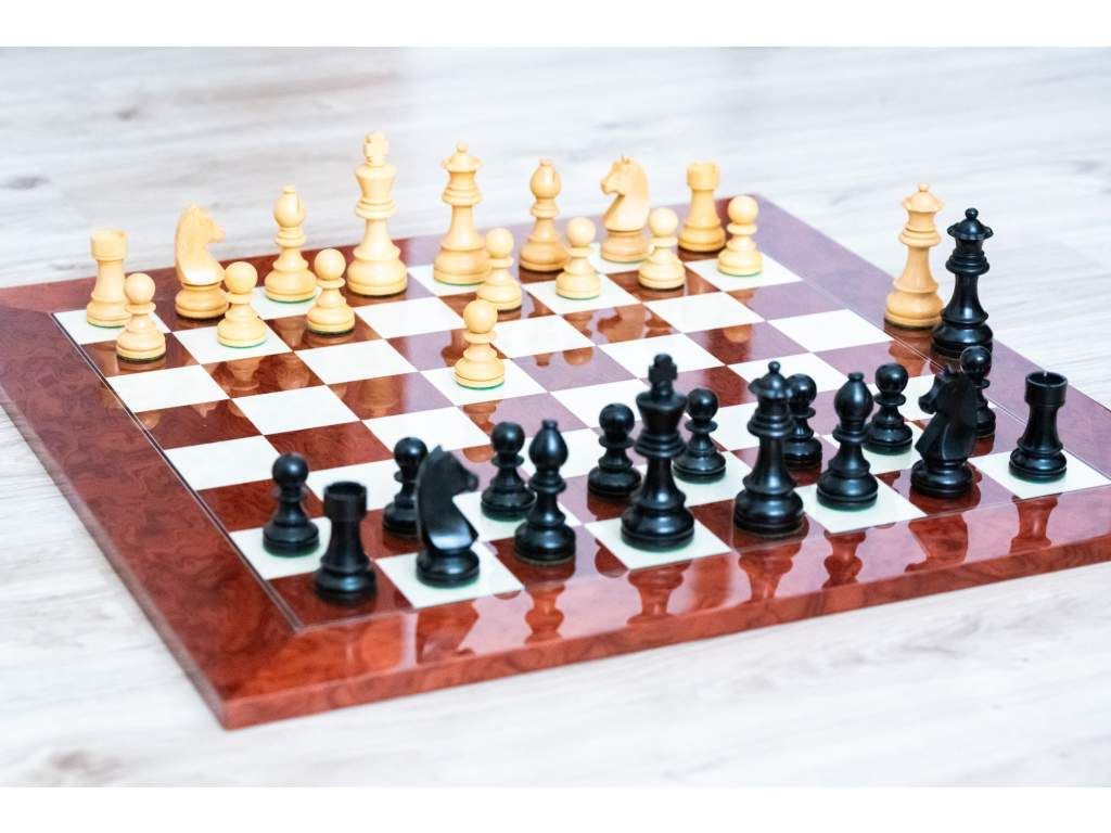 Ručně vyrobená šachovnice. Tento model kombinuje barvy výběrového červeného moravského jasanového dřeva s čistotou bílého erárního dřeva. Její povrch je opatřen lesklým lakem, který zvýrazňuje bohatost tónů dřeva a poskytuje hladkou strukturu pro přesný pohyb šachových figurek.