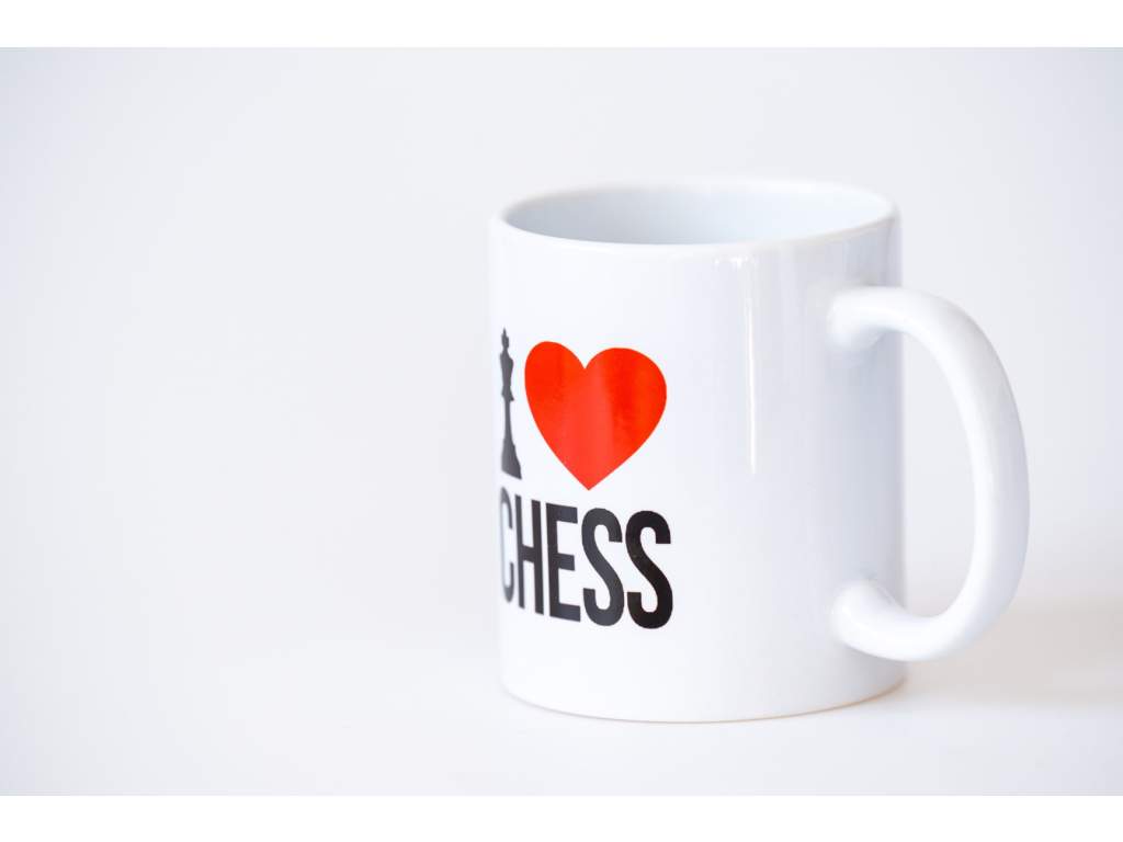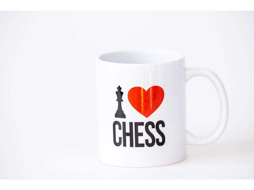 Keramický hrnek potištěný grafikou I love chess, z něhož si budeš vychutnávat čaj nebo kávu při partičce šachu, nebo jen tak, během volných chvil...