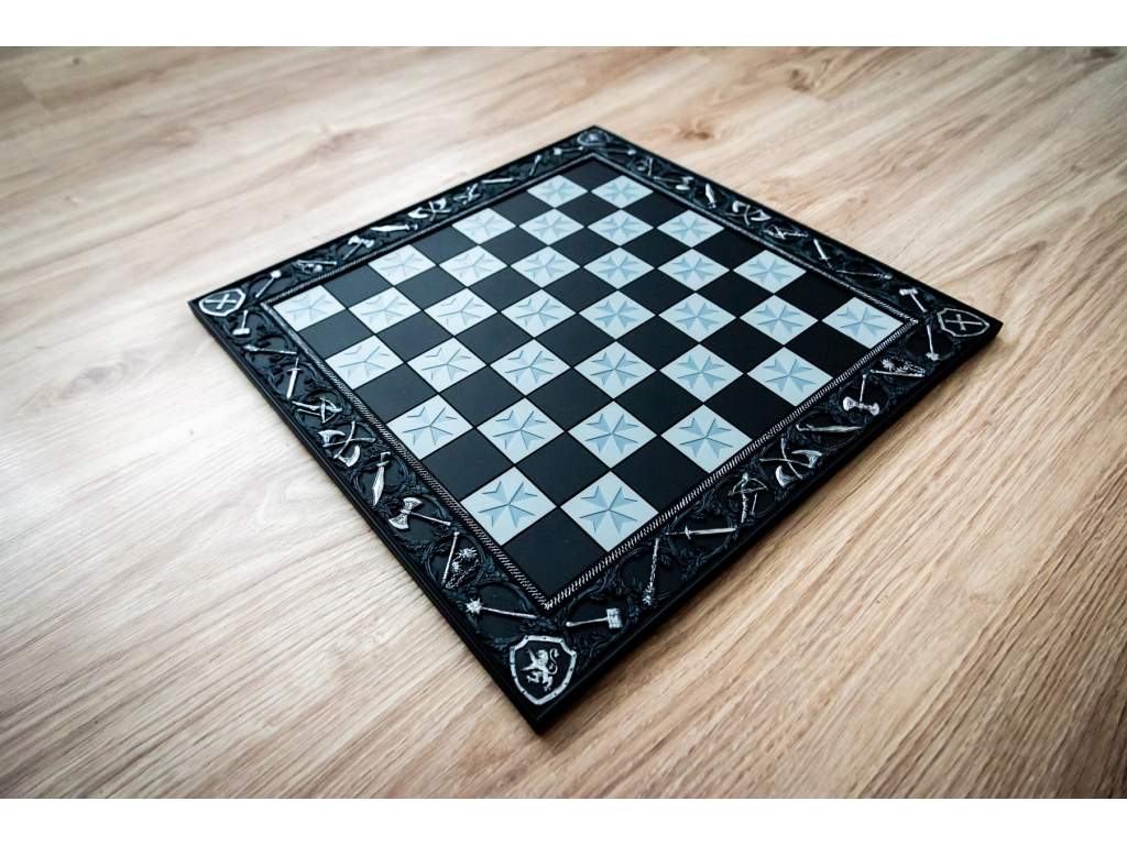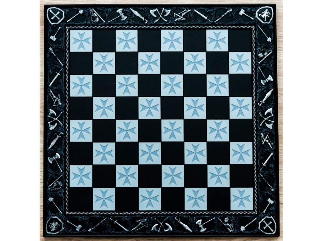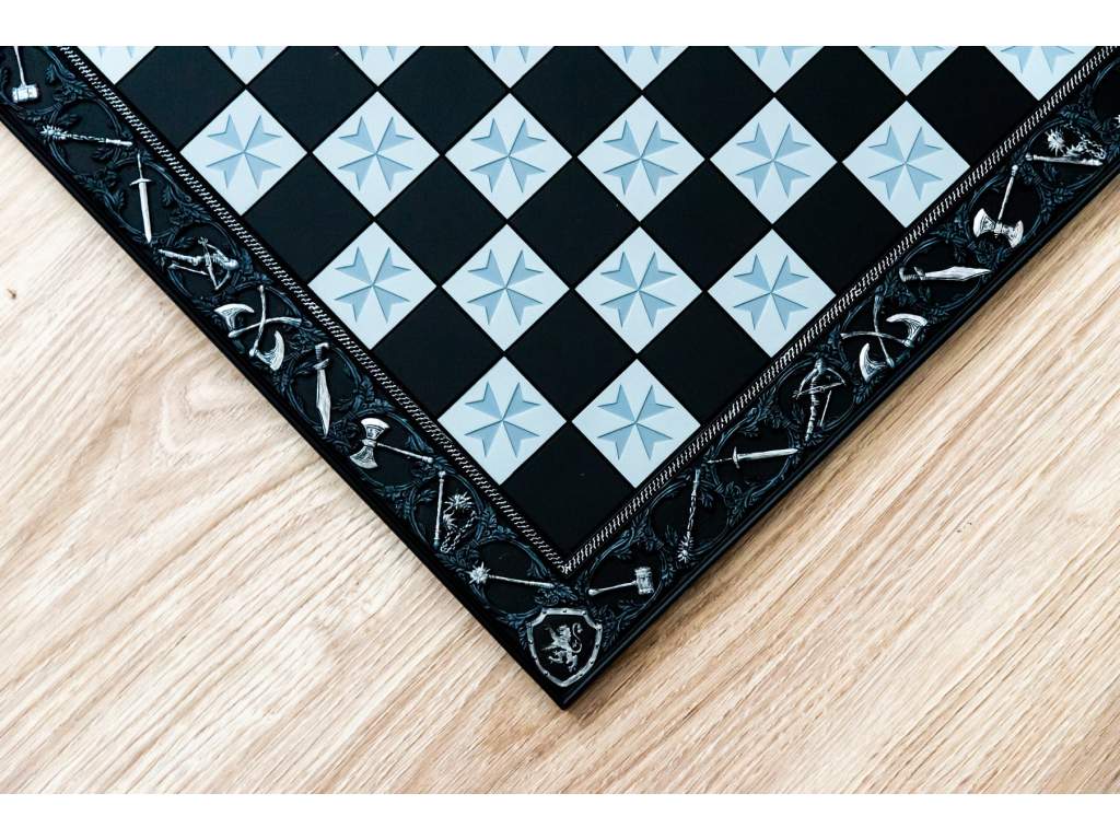 Šachovnice na motivy křižáckých výprav vyrobená s pryskyřičným základem.