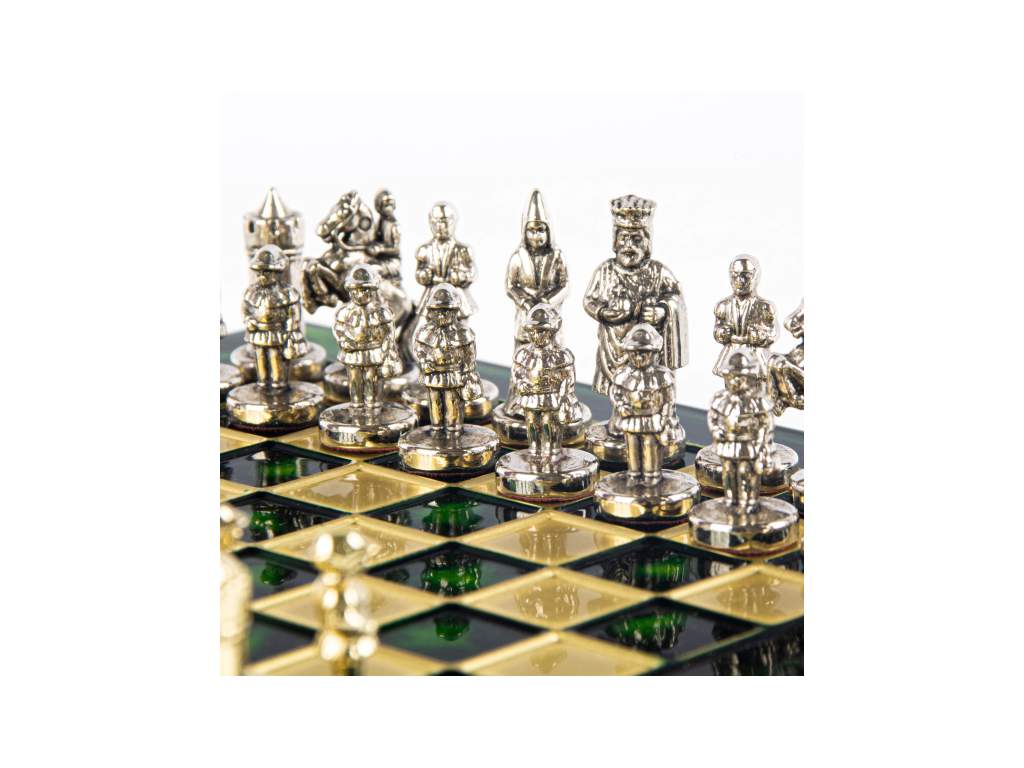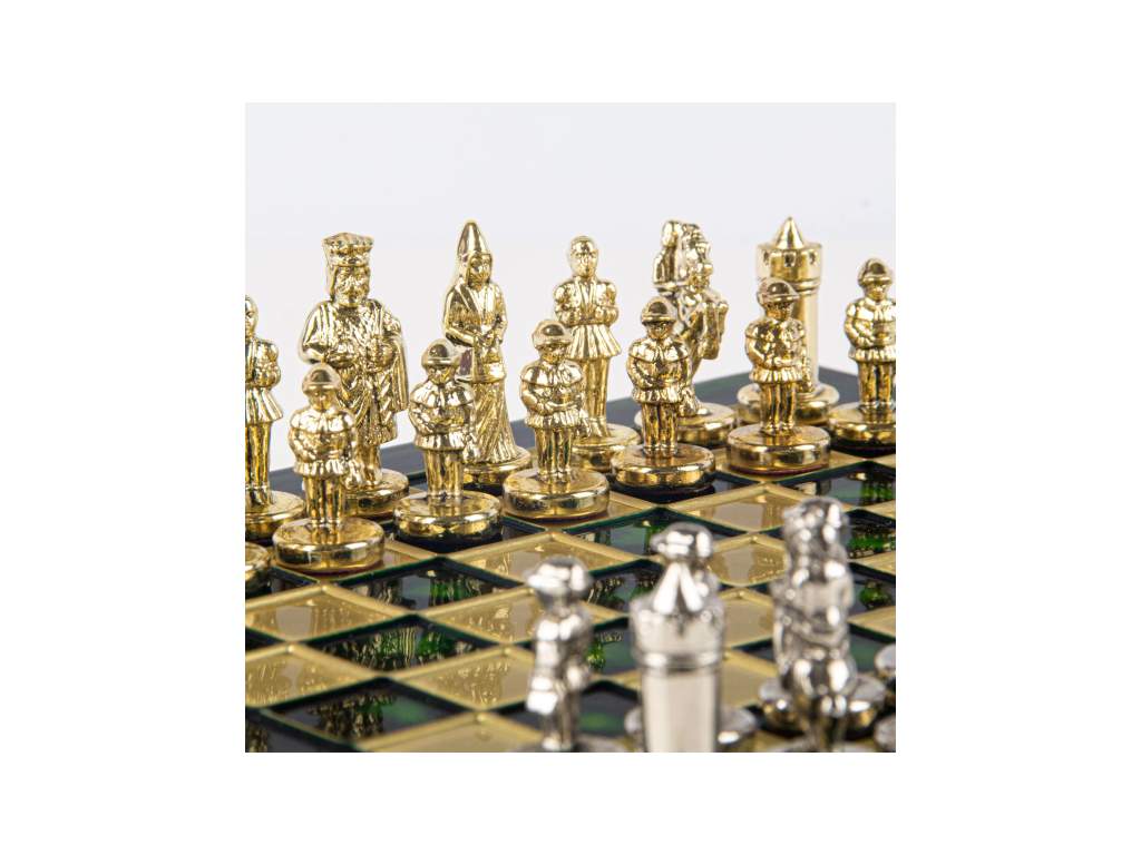 Užijte si historickou eleganci ručně vyráběné šachové sady Byzantská říše v extra malé velikosti s krásnými zlatými a stříbrnými figurkami. Tato sada, inspirovaná velkolepostí Byzantské říše, nabízí jedinečnou kombinaci historie a umění v každé partii.