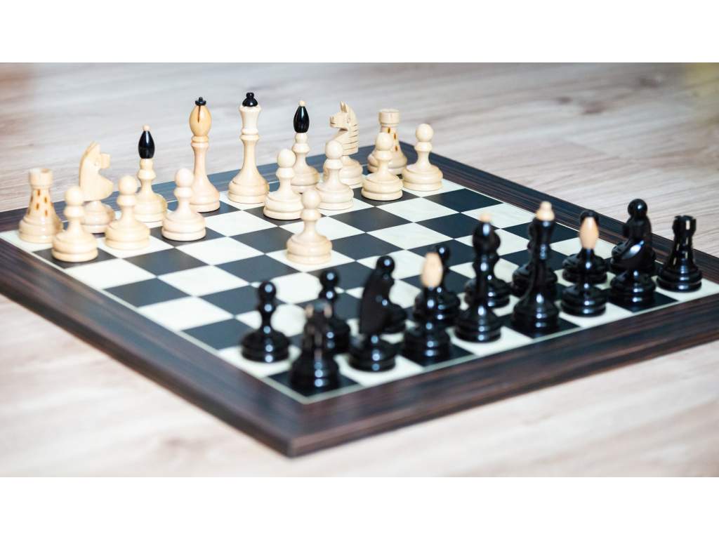 Šachovnice vyrobená z ebenového a javorového dřeva. Vyhledávané šachové figurky na Slovensku a v Čechách. Nekompromisní ruční práce, která uspokojí i nejnáročnějšího šachistu. Souprava obsahuje 16 bílých a 16 černých figurek