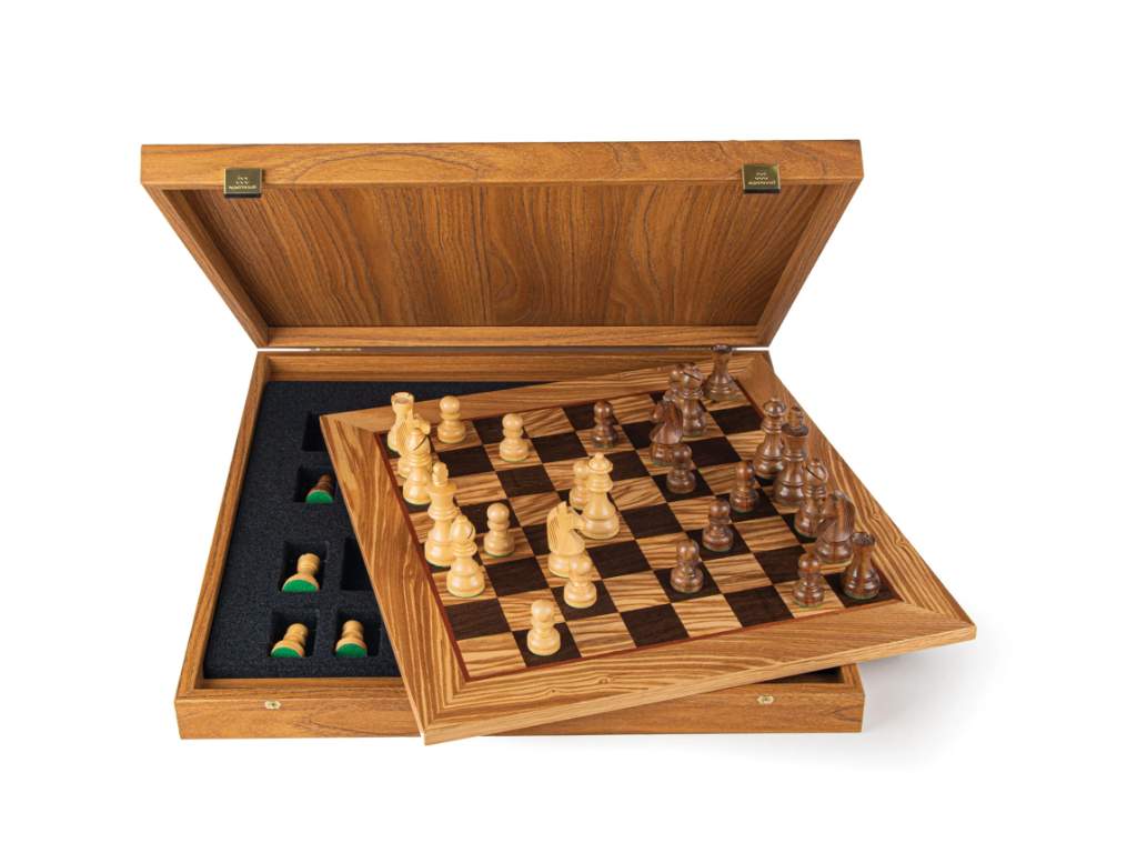 Vylepšete své šachové hry šachovou sadou Olive Burl, která obsahuje velkou šachovnici 50x50 cm a šachové figurky Staunton včetně krále o velikosti 9,5 cm. Tato nádherná sada kombinuje vynikající řemeslné zpracování s luxusními materiály, takže je dokonalým doplňkem vašeho interiéru.