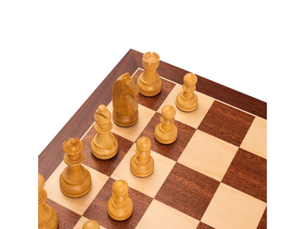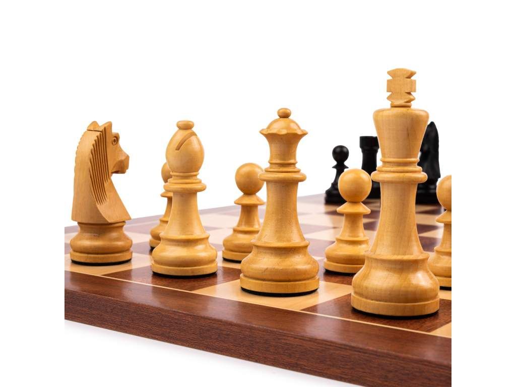 Každý detail této sady byl pečlivě navržen tak, aby nabízel jedinečný zážitek z každé partie. Samotná šachovnice je uměleckým dílem - je vyrobena z kvalitního dřeva s výjimečnou povrchovou úpravou. Stejně pečlivě zpracované figurky mají ve spodní části olověná závaží pro dokonalou stabilitu.