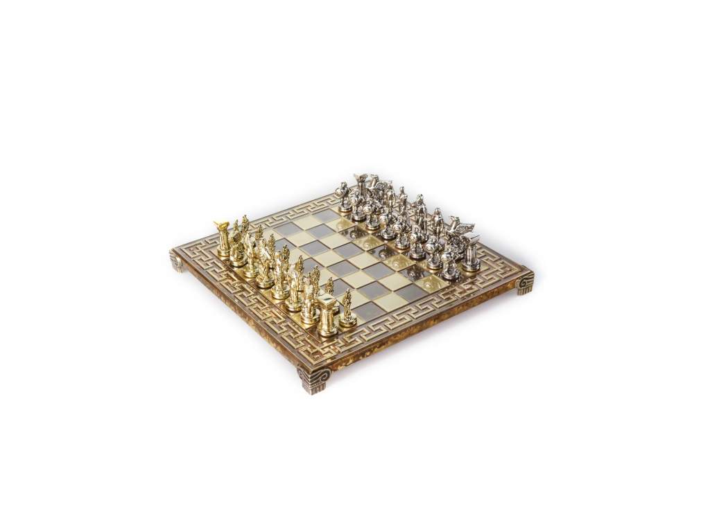 Vydejte se na legendární cestu s ručně vyrobenou šachovou sadou Spartan Warrior. Tato velkolepá sada o rozměrech 28 x 28 cm představuje velkolepost starověkého Řecka díky pečlivě navrženým zlatým a stříbrným šachovým figurkám v kombinaci s mosaznou šachovnicí.