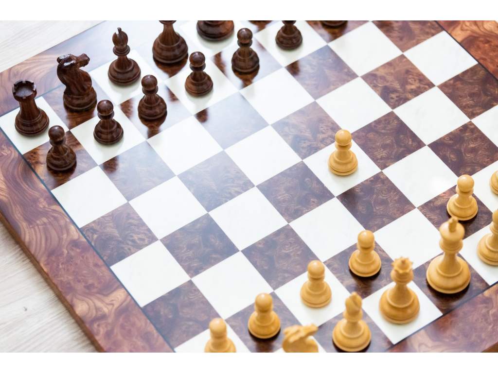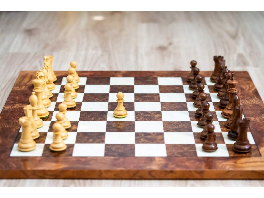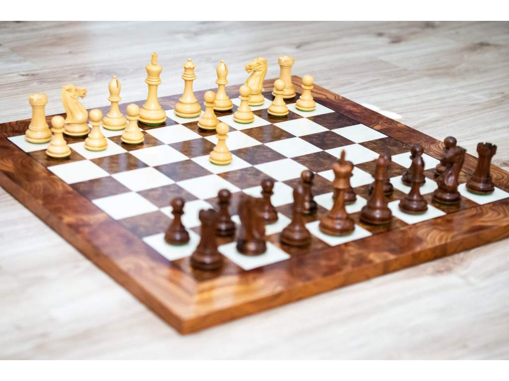 Šachovnice vyrobená z briářového a jilmového dřeva