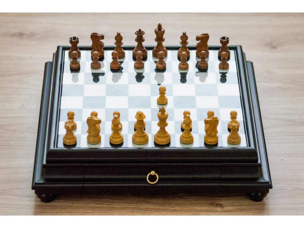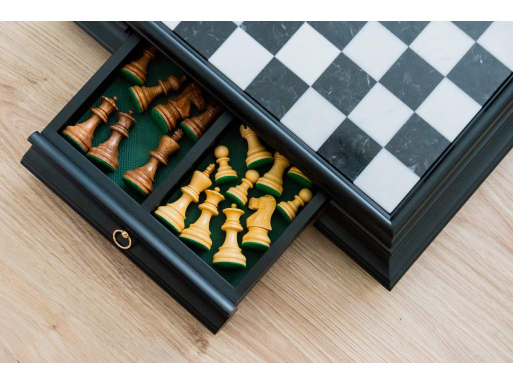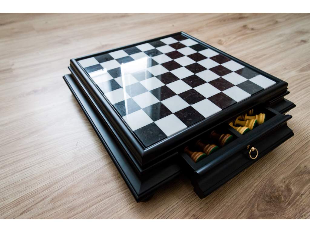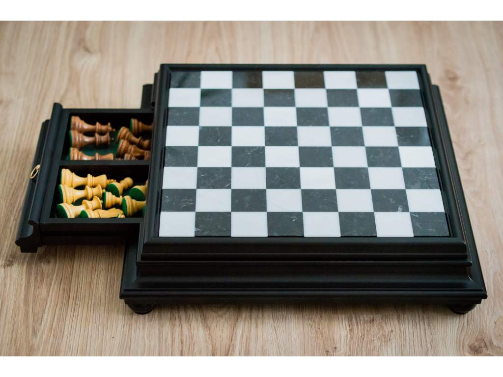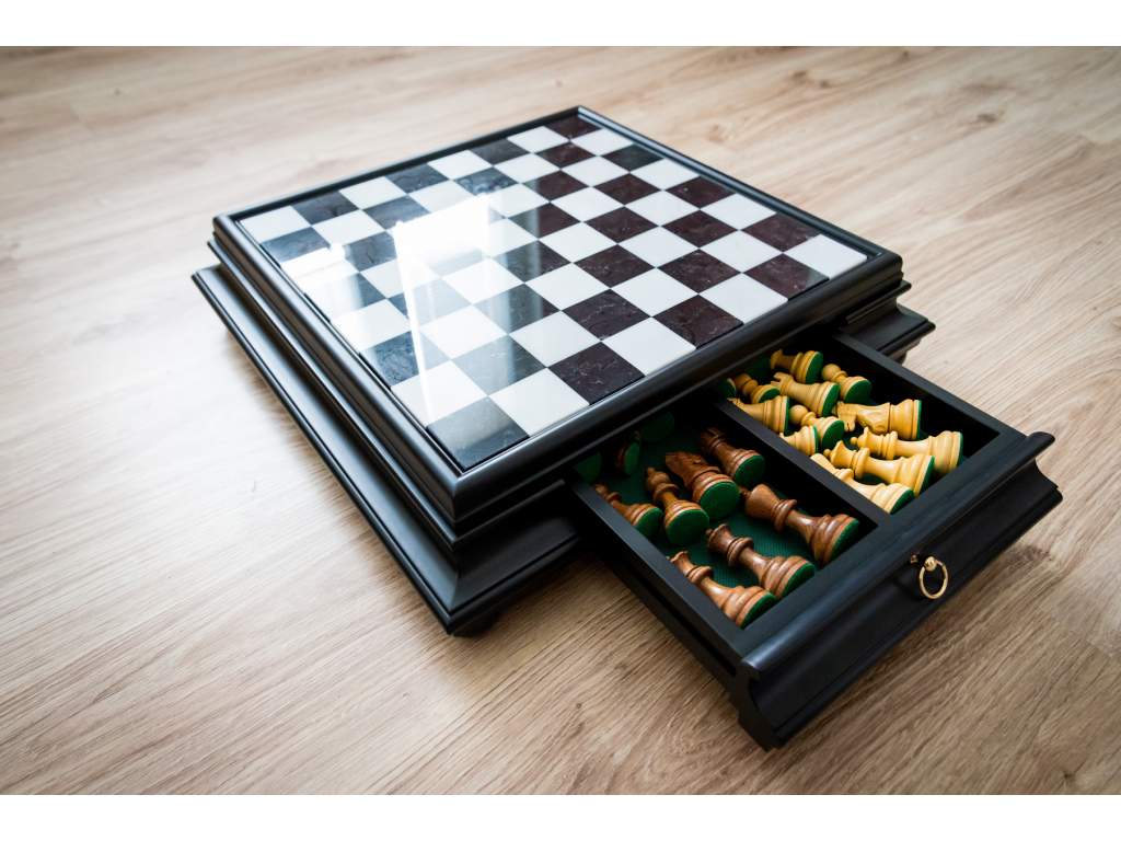 Typ šachovnice: | pevná, s úložným prostorem na figurky |
