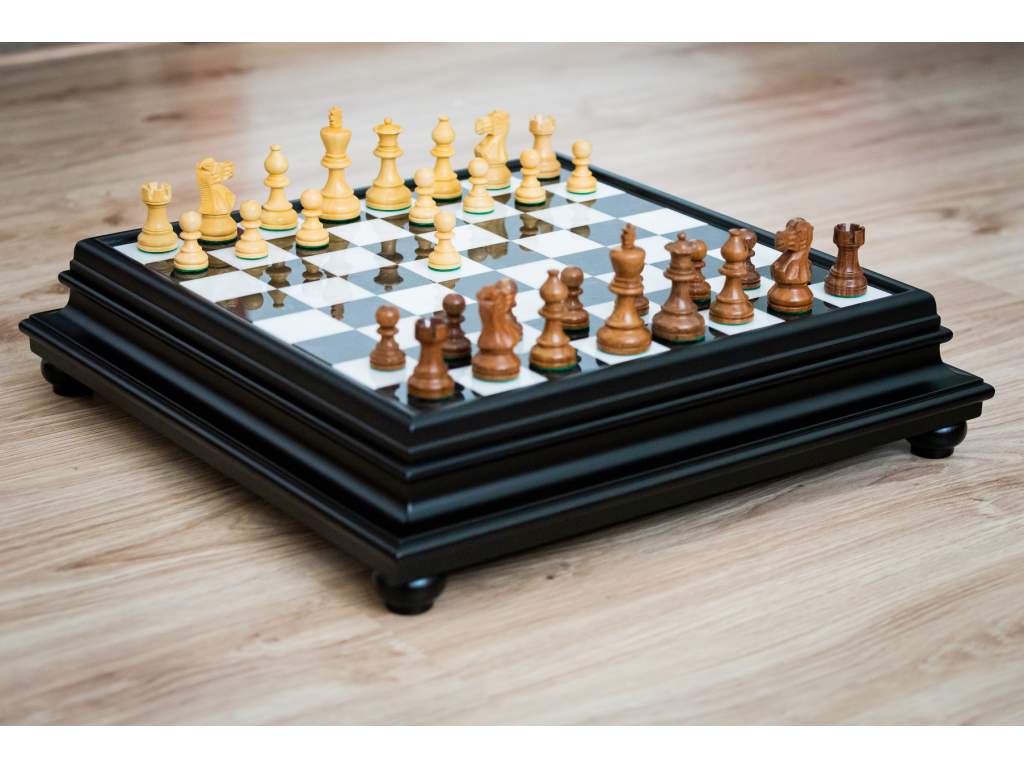 Populární verze figurek Staunton v luxusním provedení z akátového dřeva, vyvážené s měkkým podstavcem.