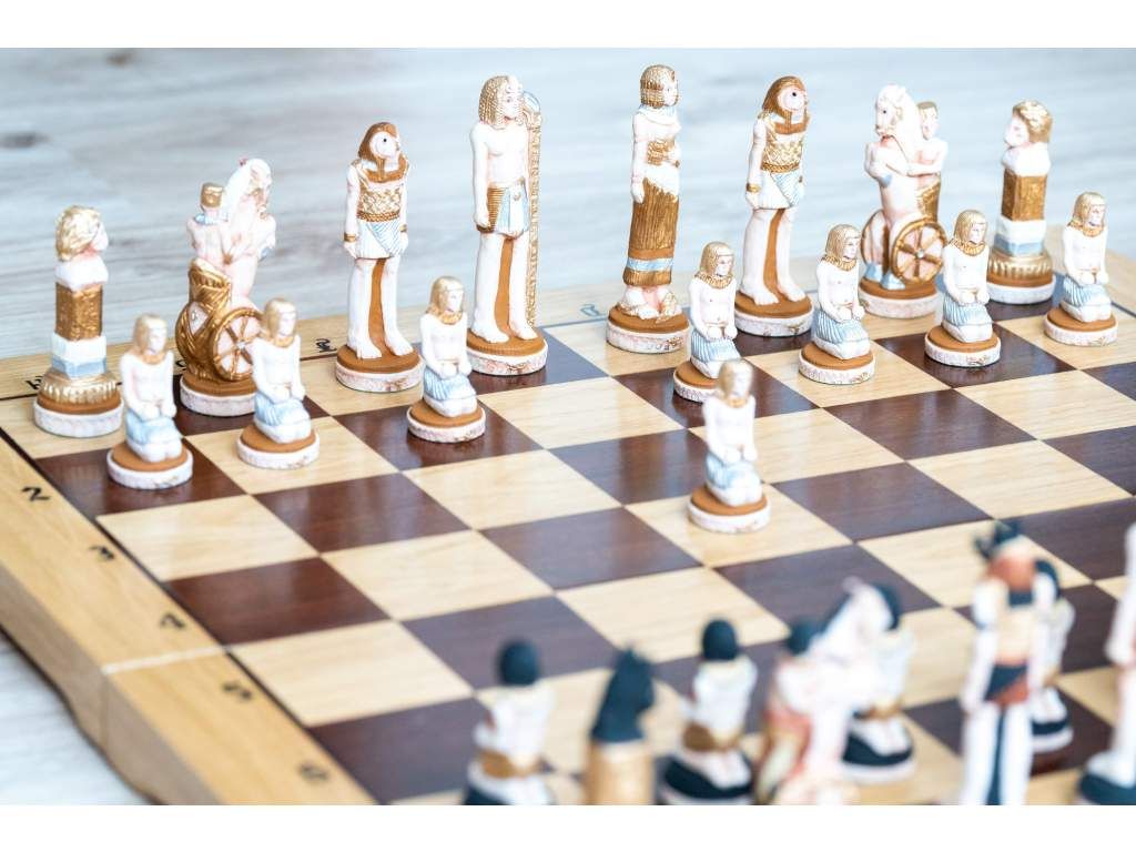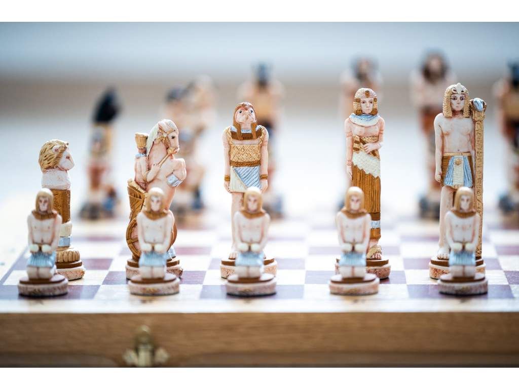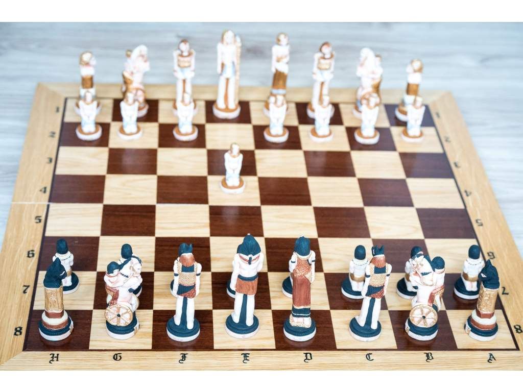 Šachy vyrobené z broušeného mramoru a ručně malované