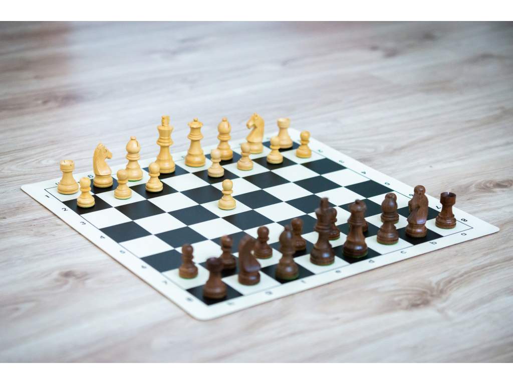 Šachová súprava strednej veľkosti s možnosťou zrolovania. Figúrky vyrobené z palisandrového dreva.