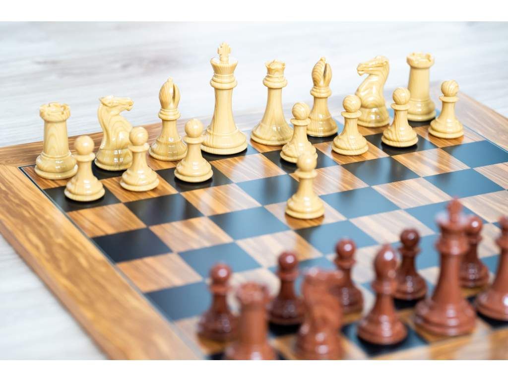 Tato atraktivní šachová sada vypadá jako pravé dřevo. Ve skutečnosti je vyrobena z patentovaného materiálu na bázi pryskyřice s názvem Spruce Tek. Figurky jsou velké a těžké a mají tradiční stauntonský design s krásně vyřezávaným jezdcem. Pryskyřice Spruce Tek vytváří elegantní vysoce lesklý povrch a figurky mají na spodní straně černé koženkové podložky.