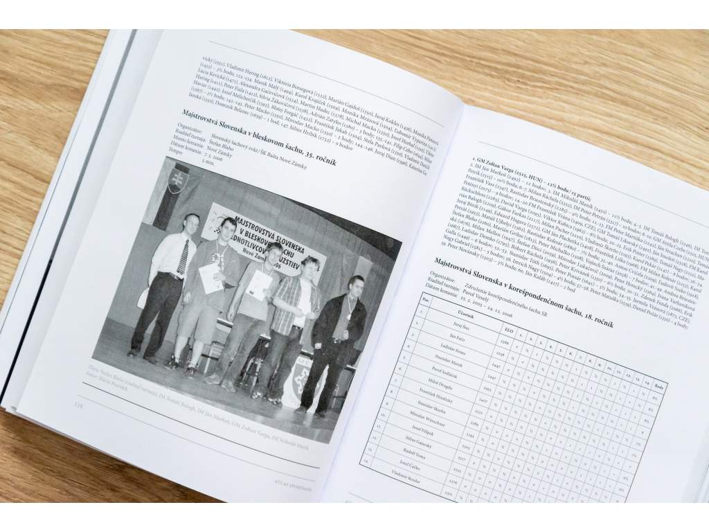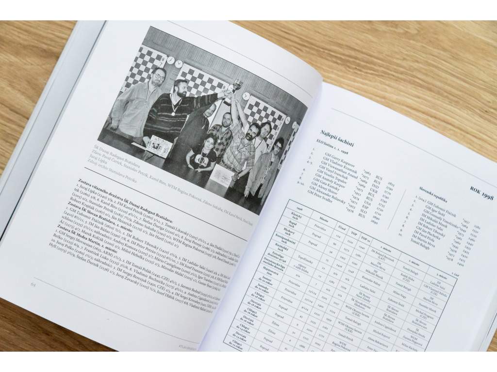 To vše je doplněno cca 150 fotografiemi, mezi nimiž dominují dvoustránkové fotografie dosavadních 8 slovenských šachových jednotek: Jana Plachetku, Igora Gažíka, Ľubomíra Ftáčnika, Igora Štohla, Sergeje Movsesiana, Jana Markoše, Petra Michalíka a Jerguše.