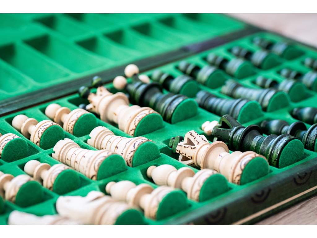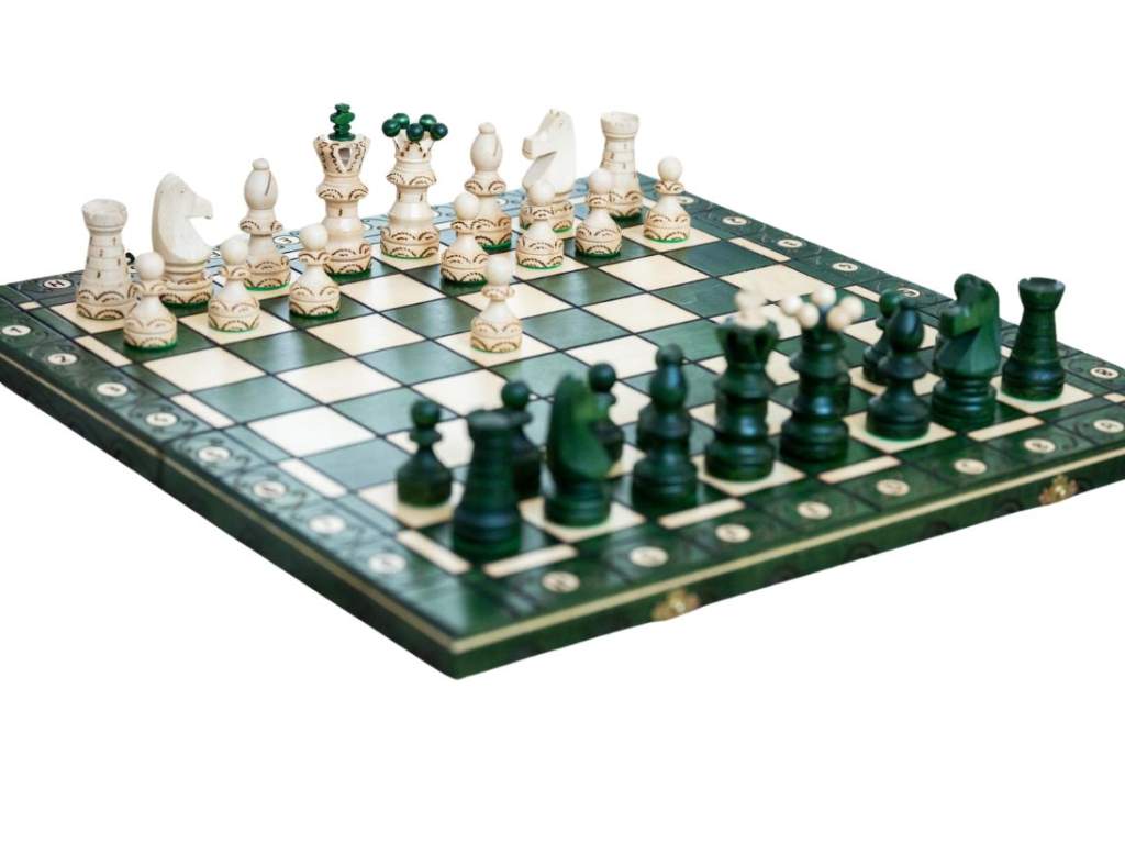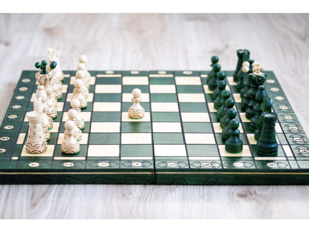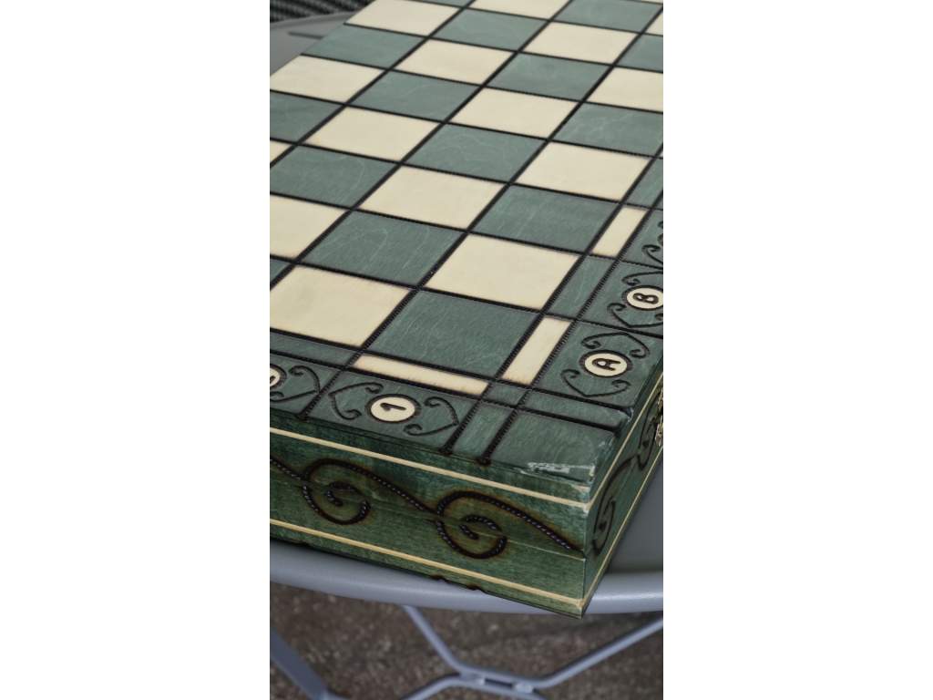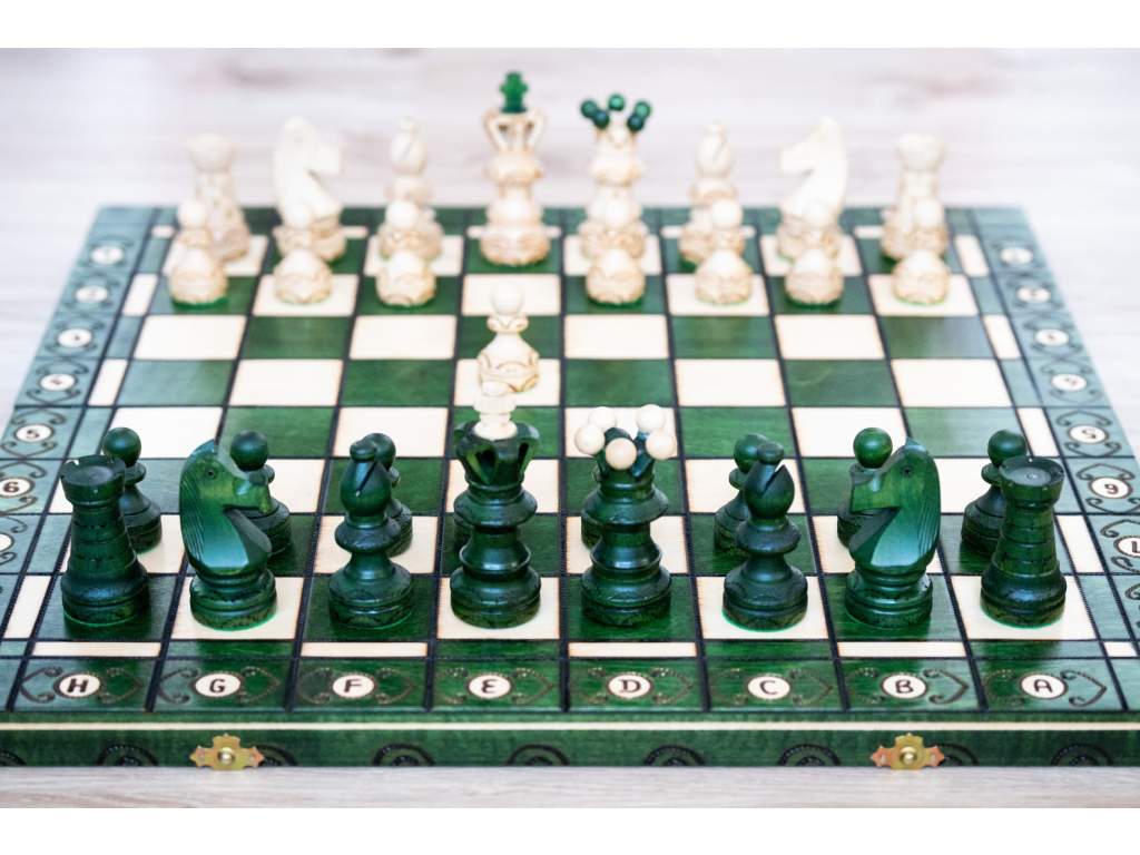 Sytě zelená barva šachovnice připomíná nekonečné lesy, symbol klidu a soustředění, v nichž se rodí nejlepší strategie.