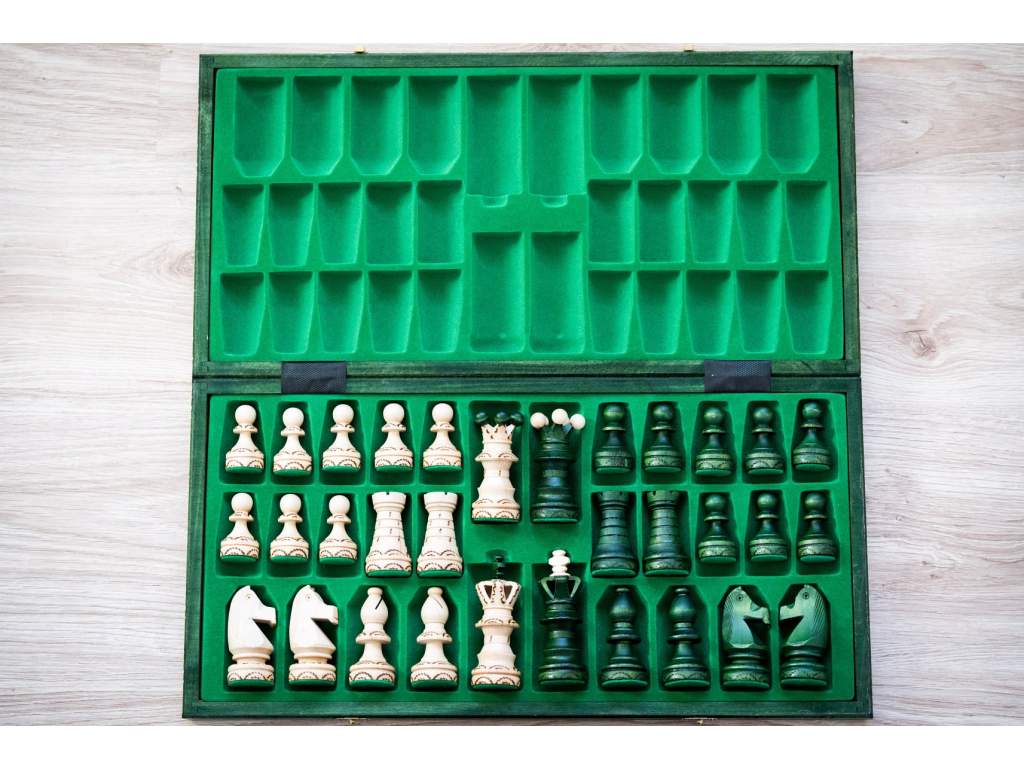 Drevené šachy kráľovské zelené