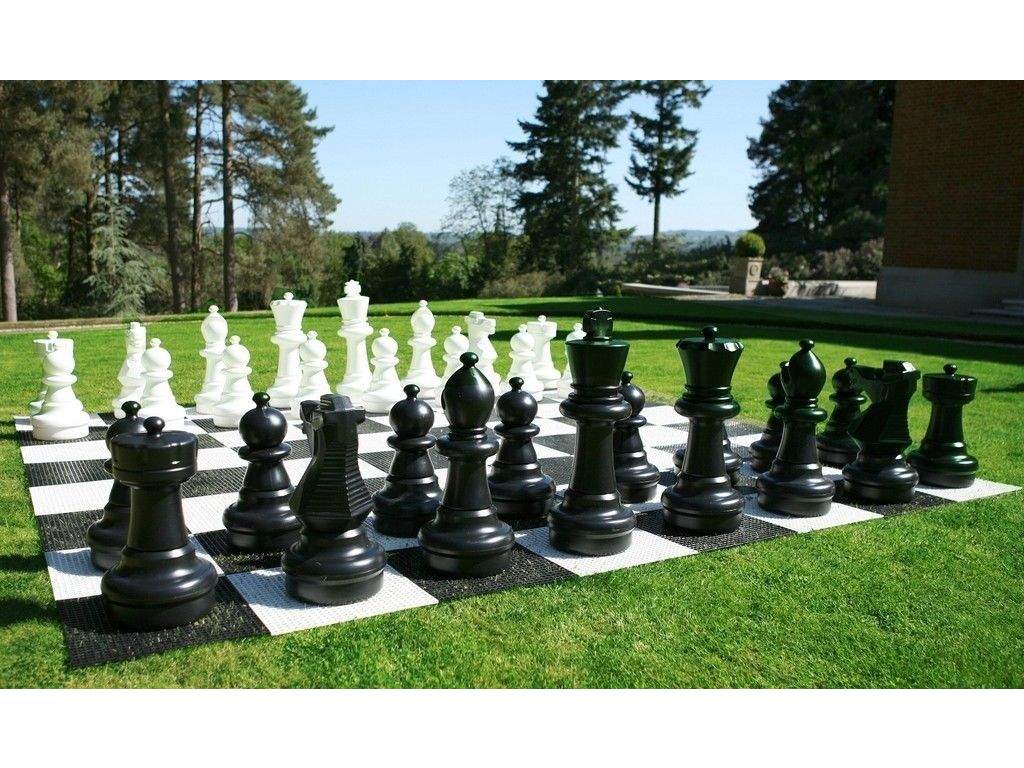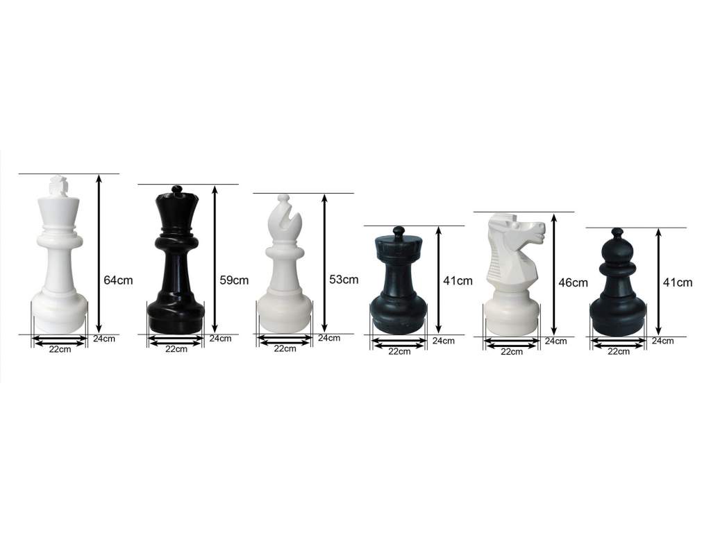 Velké šachové figurky ideální pro venkovní použití. Sada obsahuje 16 bílých a 16 černých figurek.