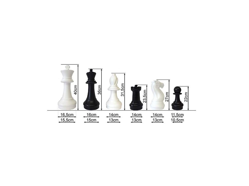 Šachové figurky ideální pro venkovní použití. Sada obsahuje 16 bílých a 16 černých šachových figurek.